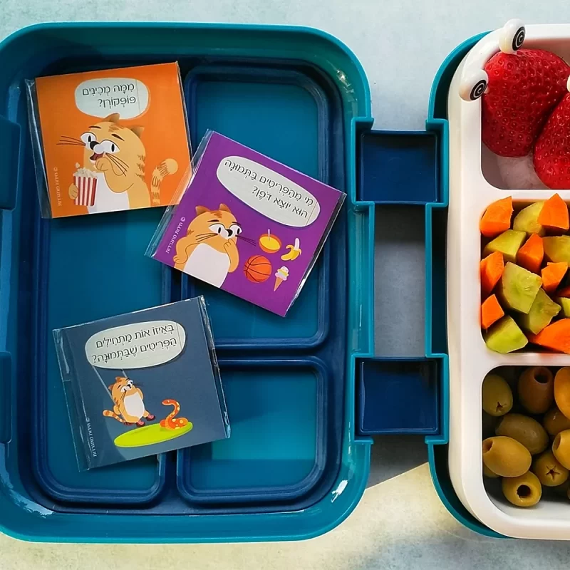 קלפי חידות ישראליים מקוריים ואיכותיים, מטפחים סקרנות וידע. מלא תוכן מעניין ומסרים מעצימים לחיזוק הקשר עם הילדים וחיזוק הבטחון העצמי שלהם.מתאים לארוחת עשר, להוסיף למתנות, לשלוח בתור הפתעה ועוד…