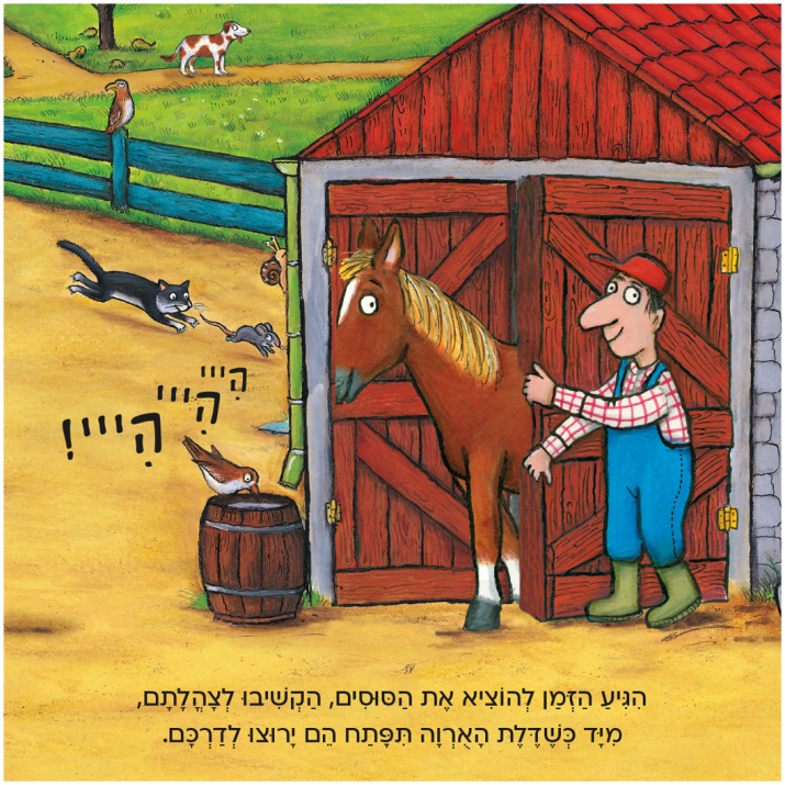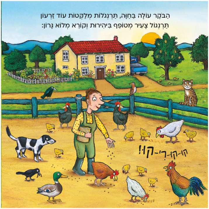 הטקסט מחורז ומלא קסם וכיף להכיר את חיות המשק השמחות.