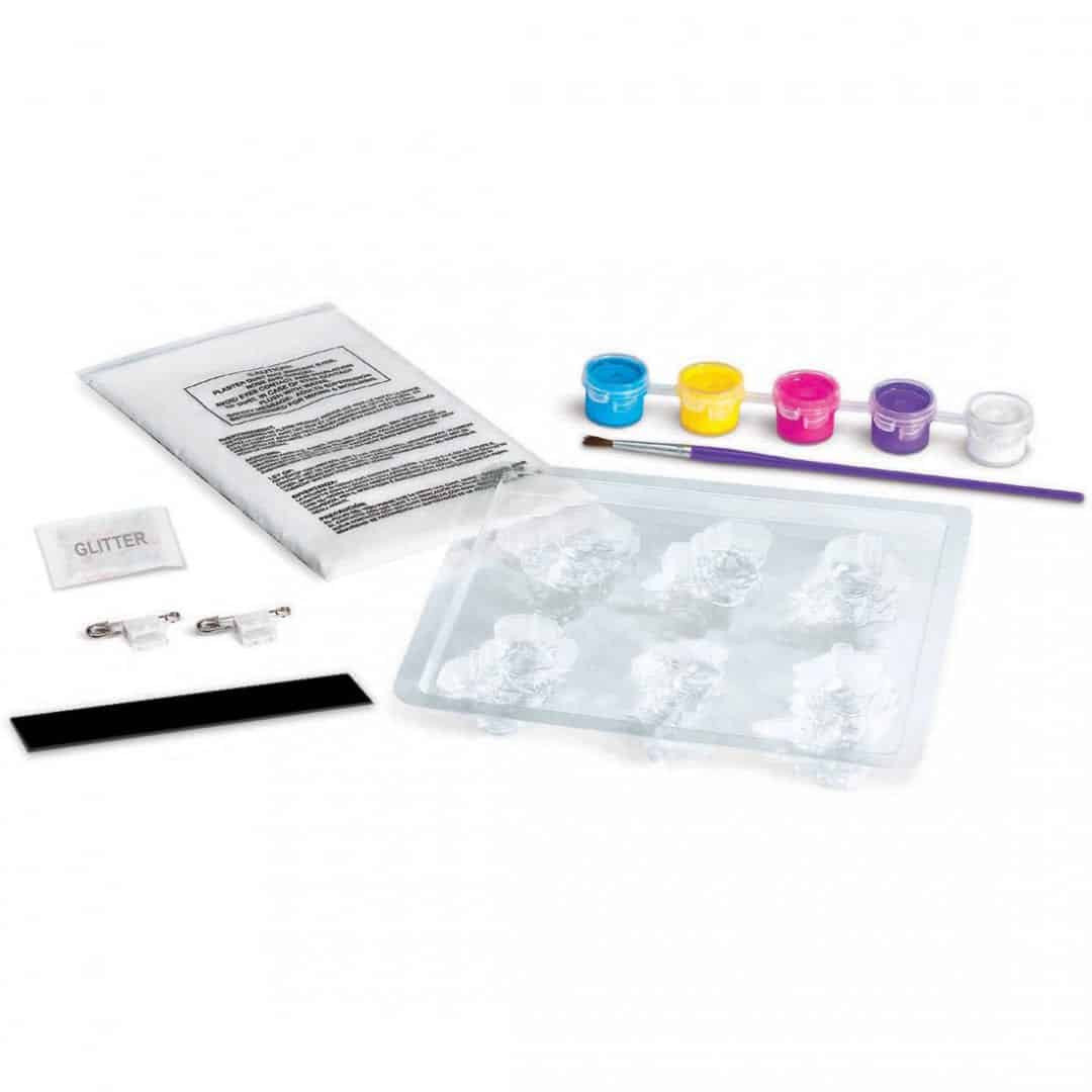 הכינו את המגנטים של הנסיכות על ידי שימוש בתבנית, בגבס, בנצנצים, בצבעים ובמכחול המסופקים בערכה.