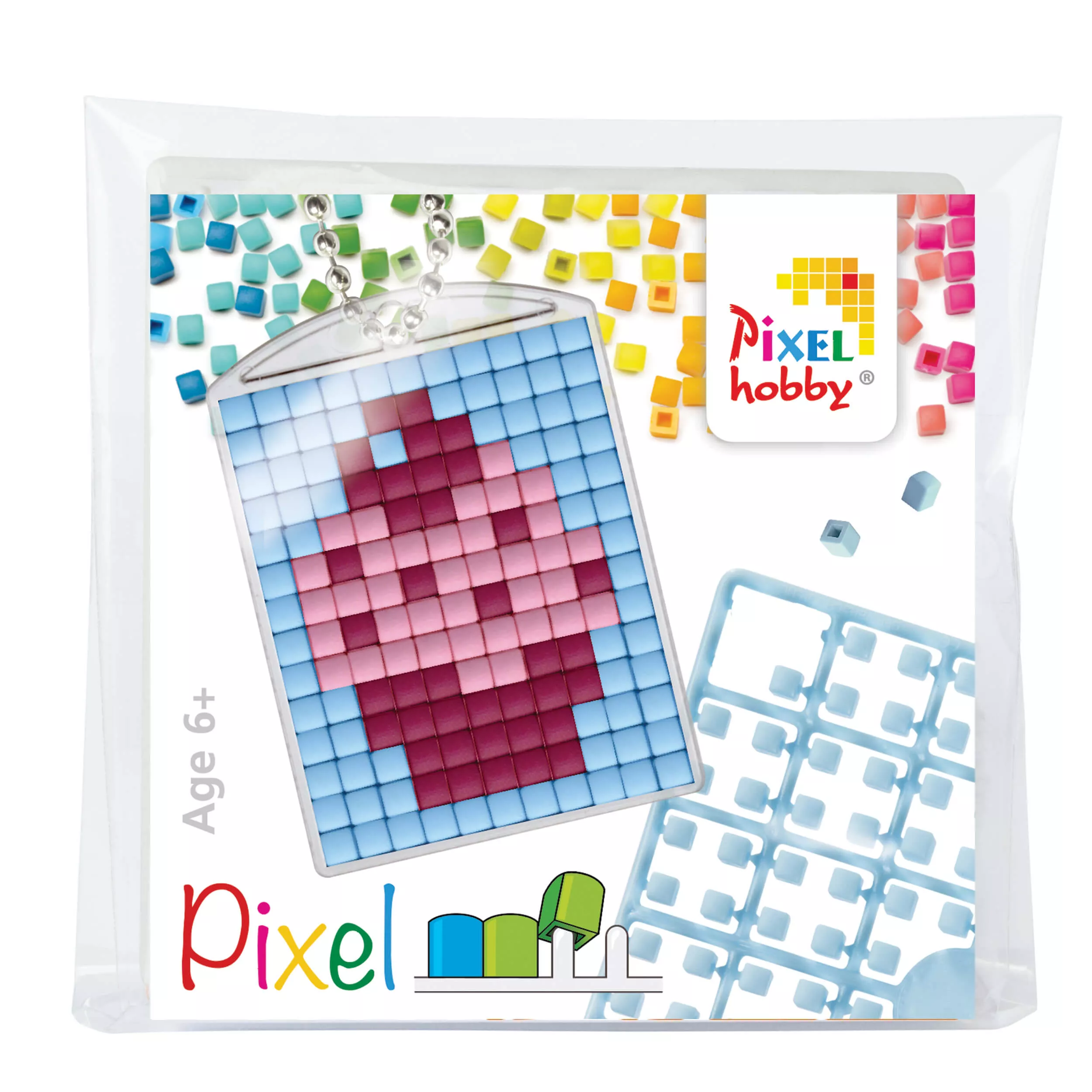 בערכה הזו תקבלו תבנית, שתי דוגמאות (בוחרים אחת או ממציאים), ריבועי פיקסלים ליצירה וטבעת למחזיק מפתחות.