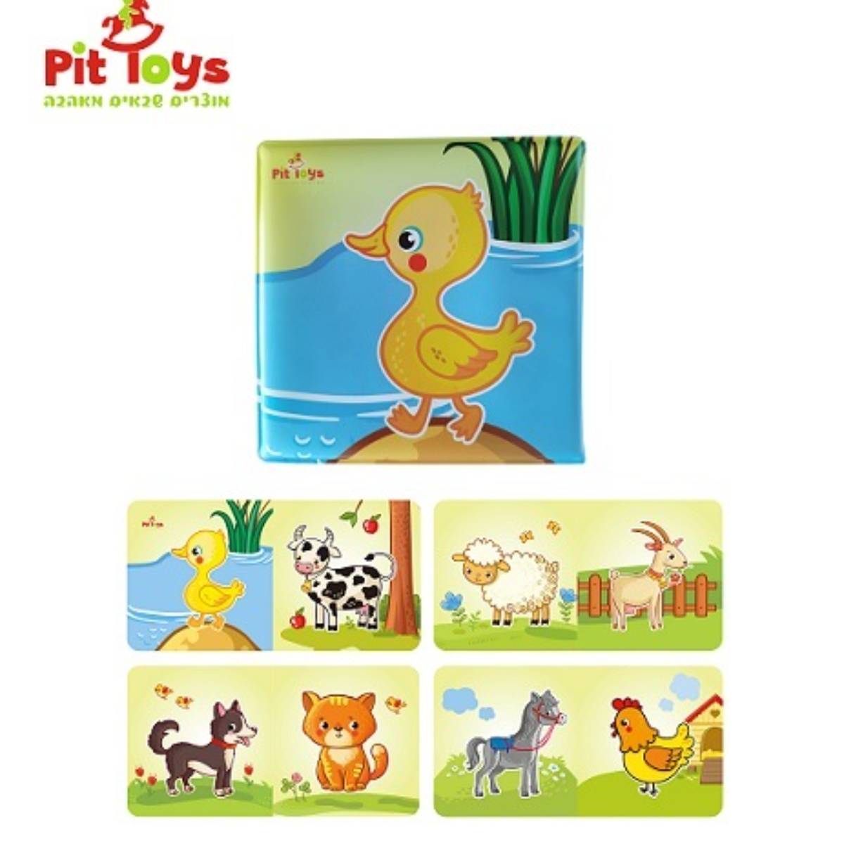 ספר משחק לאמבטיה – ציורים צבעוניים של חיות בית.