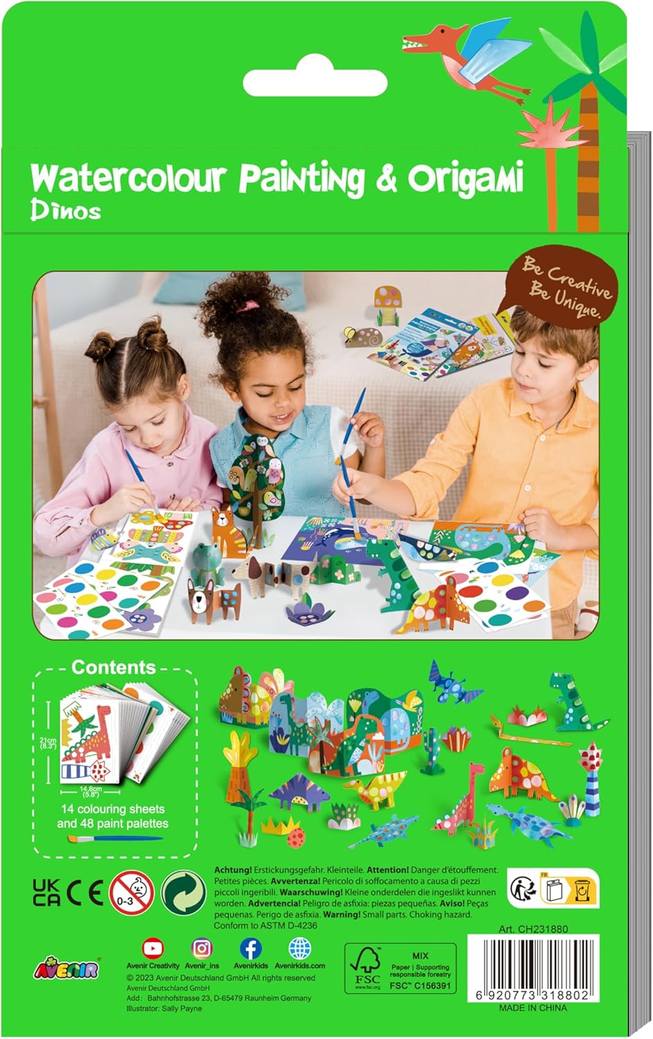 מה בערכה: 14 דפי צביעה, 48 פלטות צבע מובנות, מכחול והוראות לקיפולי אוריגמי.