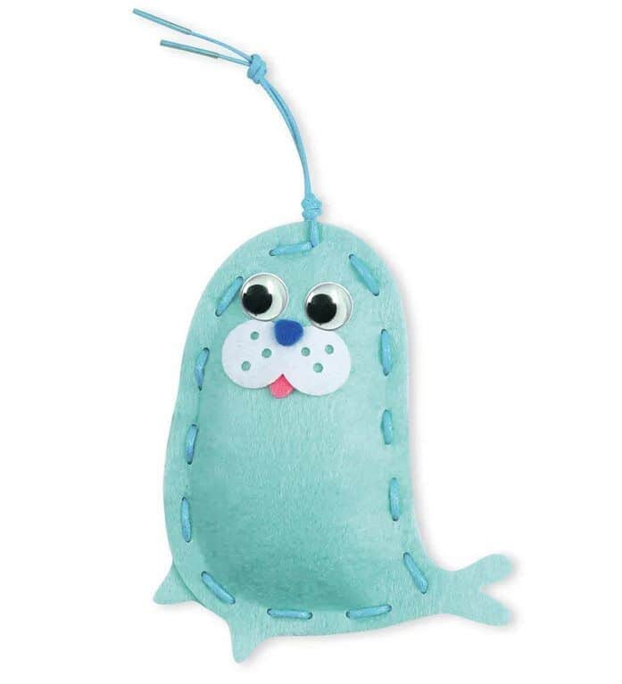 יריעות לבד חתוכות מראש, מדבקות לבד, עיני פלסטיק, מלית כותנה ושרוכים צבעוניים. החוט עבה והחורים גדולים כדי להקל על תהליך התפירה לידיים קטנטנות.