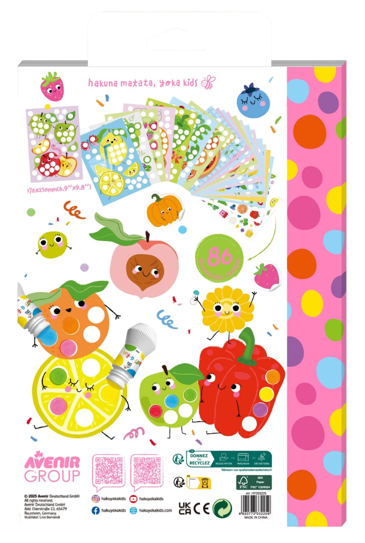 חוברת צביעה בטושטושים ומדבקות: מסיבת פירות ומתוקים מבית Haku Yoka